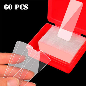 • 1 Caja con 60 cintas adhesivas de doble cara transparentes e impermeables