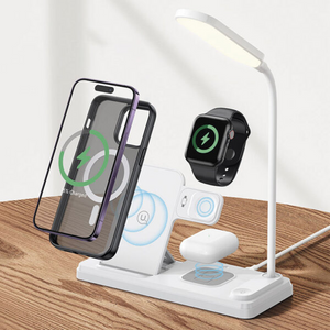El cargador inalámbrico 4 en 1 de USAMS es la solución ideal para mantener todos tus dispositivos organizados y cargados al mismo tiempo. Con soporte para smartphone, audífonos y smartwatch, además de una lámpara LED ajustable, este cargador es perfecto para tu escritorio o mesa de noche, brindando comodidad y estilo.