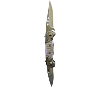 Elegante y funcional navaja con doble hoja de acero inoxidable, diseñada para ofrecer versatilidad y durabilidad. Perfecta para el uso diario y actividades al aire libre, su diseño plateado es tanto atractivo como resistente.