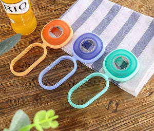 Práctico y multifuncional destapador de silicona 3 en 1, ideal para abrir botellas y tapas con facilidad. Fabricado en silicona antideslizante y disponible en tres colores vibrantes.