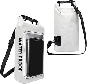 Protege tus pertenencias con estilo y seguridad con el bolso impermeable Ref T5L. Ideal para actividades al aire libre, este práctico accesorio incluye una ventana transparente para usar tu celular sin sacarlo del bolso. Disponible en blanco y negro, es perfecto para tus aventuras en la playa, piscina o deportes acuáticos.