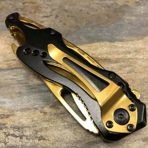 Navaja Semiautomática Plegable Dorada con Rompevidrios
