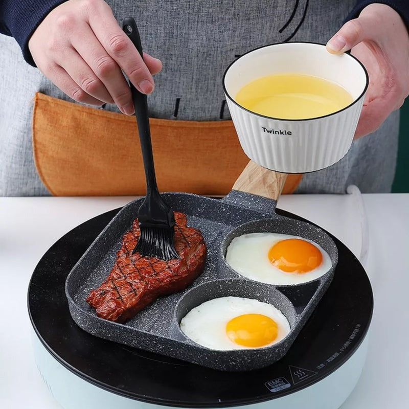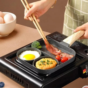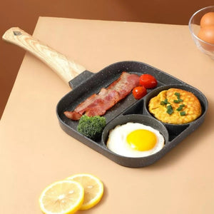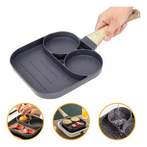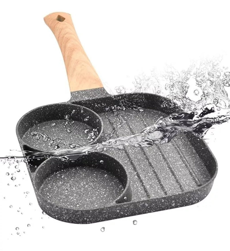 Simplifica tu cocina con la Sartén Antiadherente 3 en 1. Diseñada con compartimentos para preparar múltiples alimentos a la vez, ahorrando tiempo y esfuerzo.