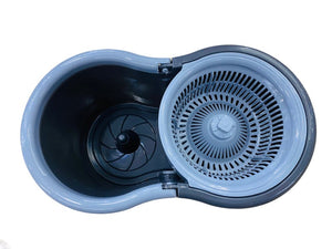 Balde Multifuncional: Diseño dividido con espacio para agua limpia y sistema de centrifugado.