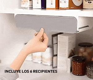 ¡Optimiza tu espacio en la cocina con el Organizador de Especias! Incluye 6 recipientes prácticos para almacenar tus condimentos favoritos de forma ordenada y accesible.