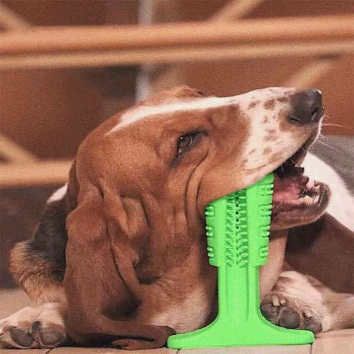 Base Estable: Su base permite que el cepillo se mantenga en posición vertical, facilitando que tu perro lo mastique desde diferentes ángulos.