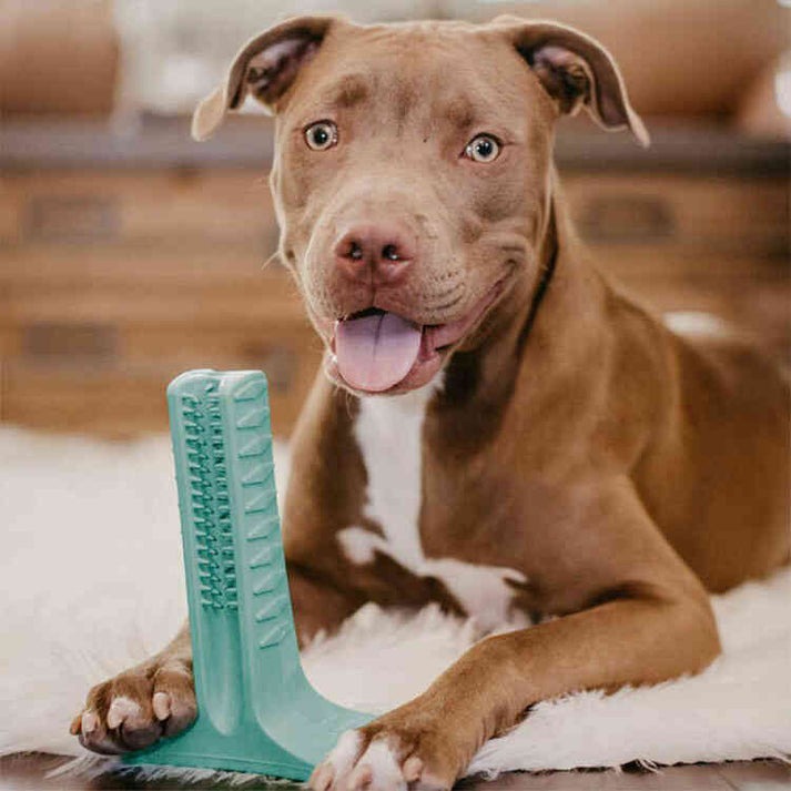 Cuida la salud dental de tu perro de manera divertida con el cepillo dental Woof Toothbrush. Diseñado para limpiar los dientes mientras tu mascota lo mastica, promoviendo una higiene bucal óptima.