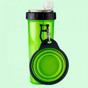 Este práctico termo para mascotas es perfecto para mantener agua y comida separadas, mientras el plato plegable asegura una fácil alimentación en cualquier lugar. Ideal para paseos largos y aventuras.